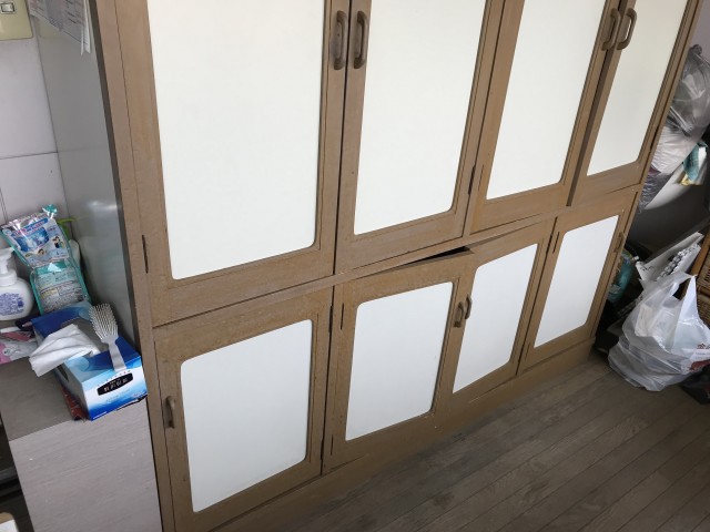 洗面室の元々あった棚を撤去して新たな収納を取付しました