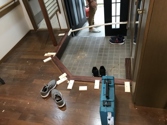 同じく玄関はこのような感じで上張りしていきます