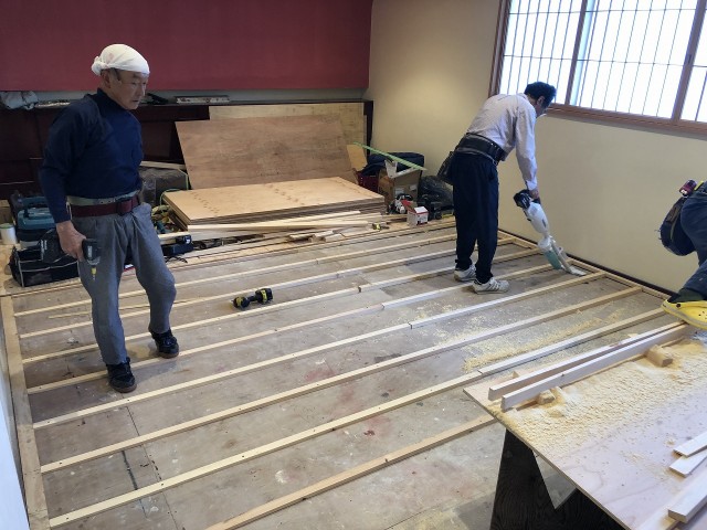 下地板を水平に調整して、新畳を敷く工事になります。