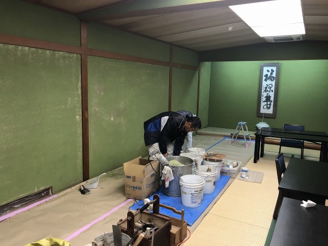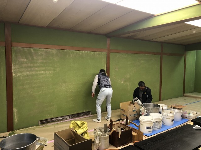 聚楽壁を塗り替えしたところは乾燥しないと入室ができないので