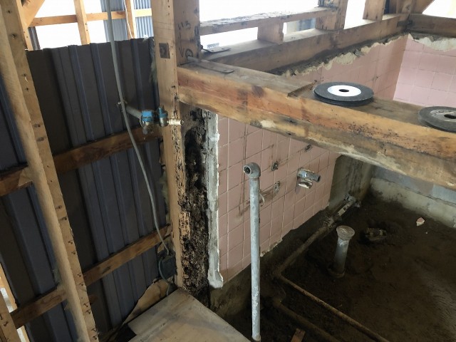 リフォーム工事では浴室廻りの白蟻被害を受けた柱や土台がよくあります。