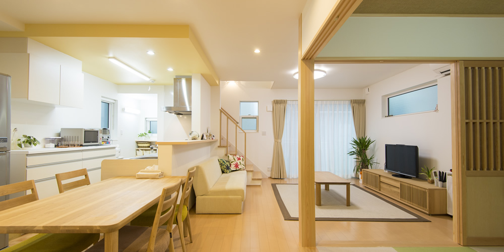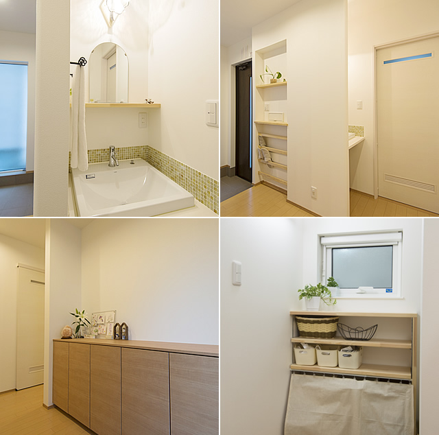 たとえば、子どもたちが帰宅してすぐに手洗いができるように玄関横に洗面所を設けたり、洗面所・浴室・脱衣所・ランドリーコーナーを1空間にまとめたり、多用途につかえる和室を設けたり…。キッチンや洗面台の水回りの高さは、主人の背に合わせて85cmに指定しましたし、照明の位置、飾り棚の高さ、框まで数センチ単位という細かな点まで、使いやすさにとことんこだわりました。だからとっても住みやすいんです。こんなに面倒なオーダーを色々ぶつけても、担当のコーディネーターが親身にすべてを叶えてくれたお陰で、思った以上の素敵なマイホームが出来上がり、とても気に入っています。
