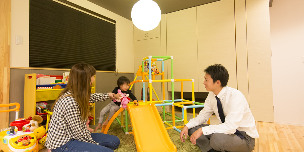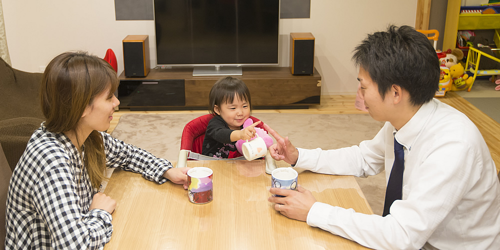 A.「仕事が終わったらすぐ帰りたくなる家」をお願いしました。アパートでは、収納スペースが少なく、すぐにモノが溢れてしまうし、洗車やタイヤ交換、荷物の保管まで、わざわざ実家でせざるを得ず、本当に不便なことばかり。それもあって、すっきりと片づいた住まいへの憧れが強かったんですね。一番の要望は、収納スペースをたっぷり確保した、家族みんなが心から寛げる空間でした。