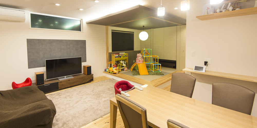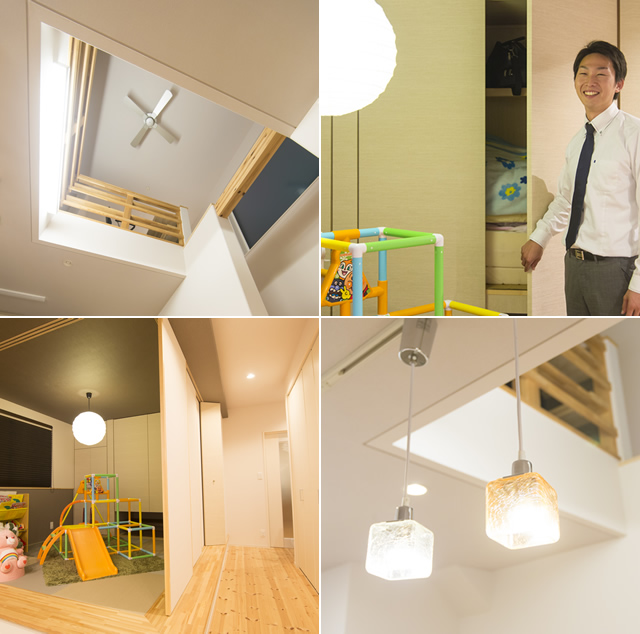 将来的に、仕切って2部屋にできるよう子ども部屋は広めにしましたし、吹き抜けを介してつながる2階ホールのPCコーナーも、いずれ子どもの勉強スペースとしても使えるのではと思っています。